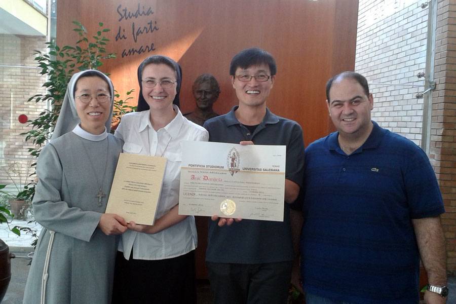 Na Papinskom sveučilištu Salesiana u Rimu, 7. listopada 2014., s. Danijela Anić uspješno je obranila licencijatski rad pod naslovom „Izazov drugog poziva u redovničkom životu. Krhkost kao snaga za obnovu redovničkog života: formativno-konstruktivni vidovi“ („La sfida della seconda chiamata nella vita religiosa. Fragilità come forza per il rinnovamento della vita religiosa: aspetti formativi-propositivi“). Na Fakultetu odgojnih znanosti, u Povjerenstvu za obranu rada bili su: prof. dr. sc. Giuseppe Mariano Roggia  (član), prof. dr. sc. Gabriele Quinzi (mentor – član), prof. dr. sc. Mario Oscar Llanos (predsjednik). Javnoj obrani, uz nekolicinu njezinih kolega i prijatelja, nazočile su Klanjateljice internacionalne zajednice iz Generalne kuće u Rimu.