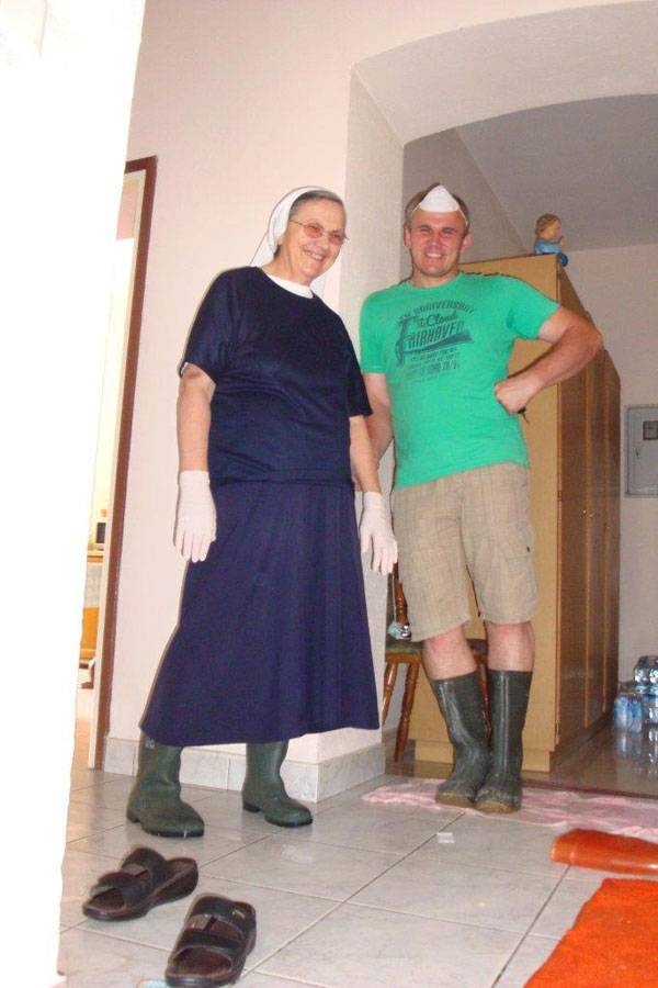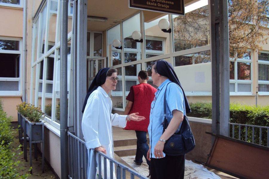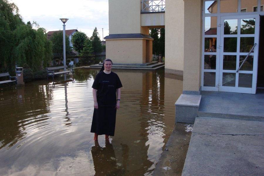 Sestre su u teškim trenucima bile blizu stanovnicima, zajedno s njima su bile kod iseljavanja i pomagale im na različite načine. Bile su uz njih i u Orašju, gdje su našli privremeni smještaj u vrijeme dok nije bio moguć pristup njihovim poplavljenim mjestima, imanjima i kućama. Sestre su mnogim su gestama, neumornim zalaganjem, molitvom i prisutnošću podržavale vjeru i nadu u svima koje su susretale.