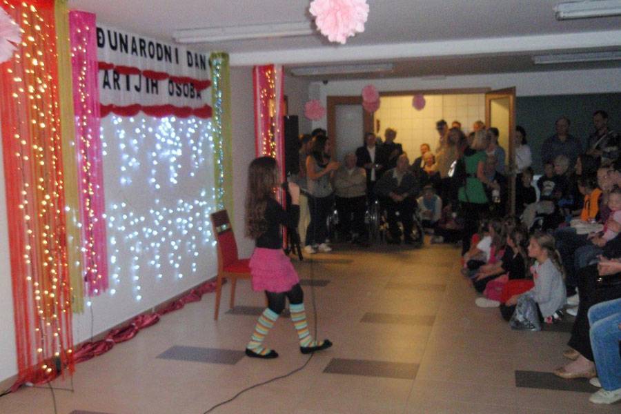 Oko svih detalja u pripremi pobrinula se s. Snježana Pavlović, socijalna radnica. Dvorana s dobro osmišljenim kulisama, svjetlom i razglasom, omogućila je gotovo profesionalne izvedbe. Voditeljice programa Jasminka Klarić i Slavica Špoljarić na simpatičan su način popratile pojedine nastupe različitih darova i generacija. Suvremeni ples predstavile su dvije dječje plesne skupine „Latice“ i „Mighty Fighters“ (Hrabri borci). Luka Zeba, unuk jedne korisnice Doma odsvirao je dvije skladbe na gitari, a mala Kristina Kokalović s otpjevane dvije pjesme oduševila je publiku i gotovo utjelovila izvorne izvođače.
