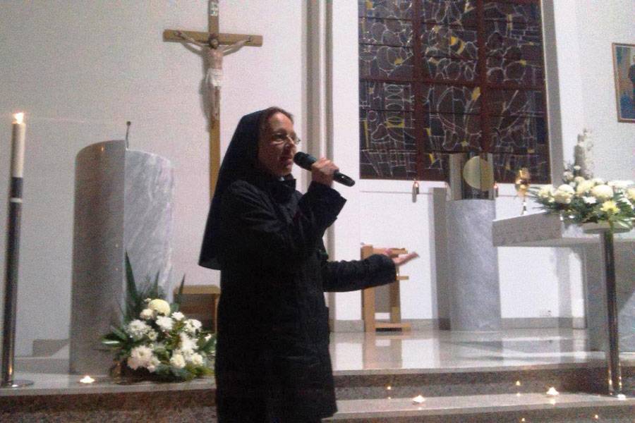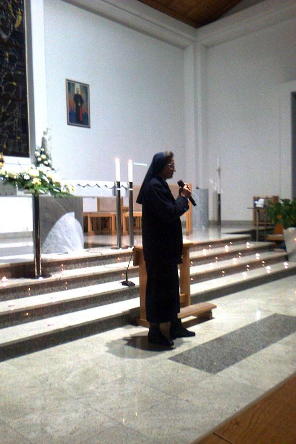 Matija Pavić i s. Sunčica Kunić, Klanjateljice Krvi Kristove, progovorile su o putu svetosti svete Marije De Mattias te o redovničkom pozivu. Istaknuta je otvorenost i predanje svete Marije De Mattias Božjim poticajima u jednostavnosti svakodnevice. „Upravo je to ono na što nas Gospodin poziva: živjeti Evanđelje u konkretnim životnim situacijama jer to je najsigurniji put do svetosti, a svi smo pozvani na svetost“ – bila je to završna poruka na kraju večernjeg programa. Druženje se nastavilo u župnoj dvorani uz dijeljenje iskustava i pjesmu.