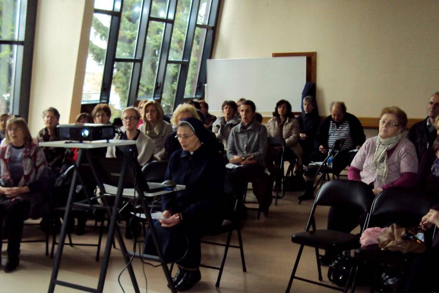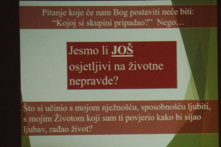 U poslijepodnevnom radu podijelili smo svjedočanstva iz života u kojima smo prepoznali djelovanje Božjeg milosrđa. Ispunjeni novim spoznajama, završavamo susret Euharistijskim klanjanjem. Prisutnost Boga u bijeloj hostiji je kao sunce koje nam zrakama lagano grije duše i topi led grešnosti, milost se razlijeva i donosi utjehu, nadu, radost. Idemo u susret Božiću, čekamo novo vrijeme u kojem će se milosrđe i istina zagrliti.
