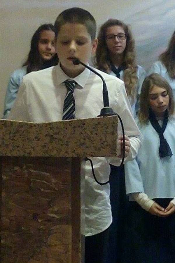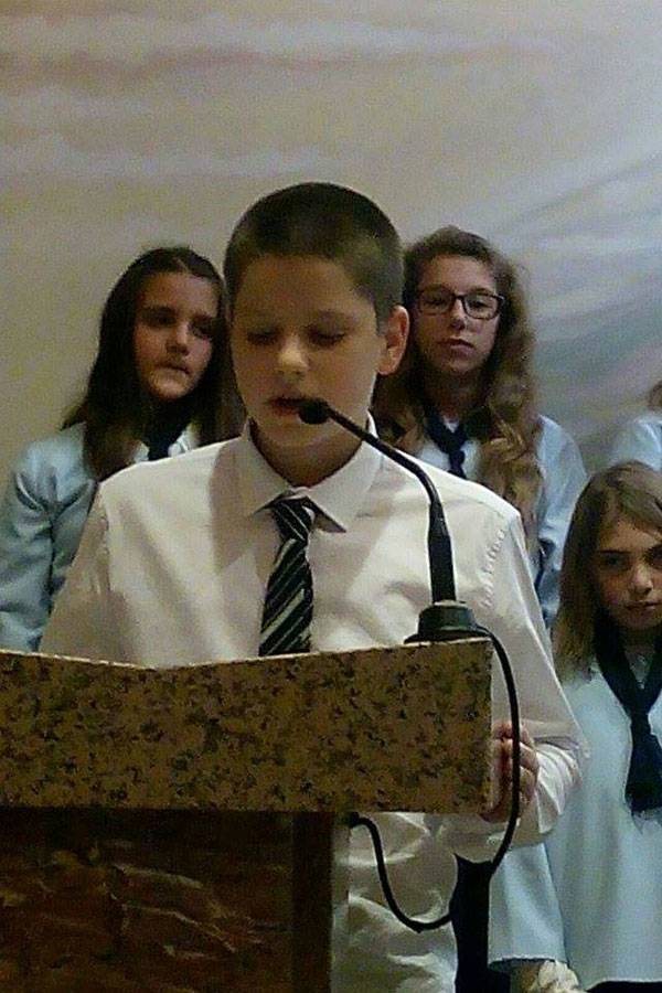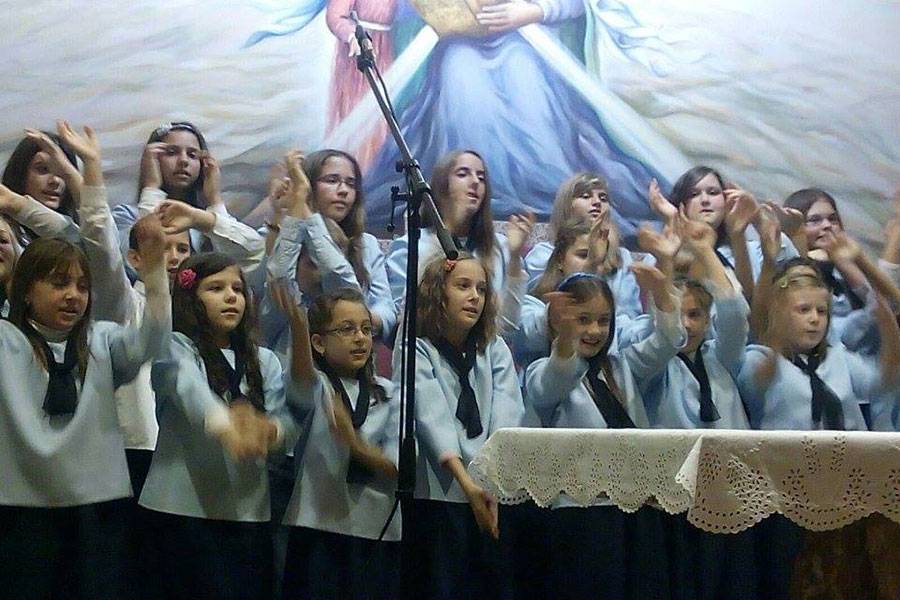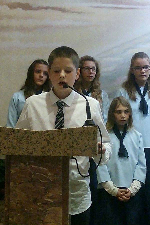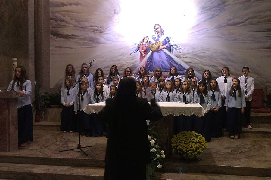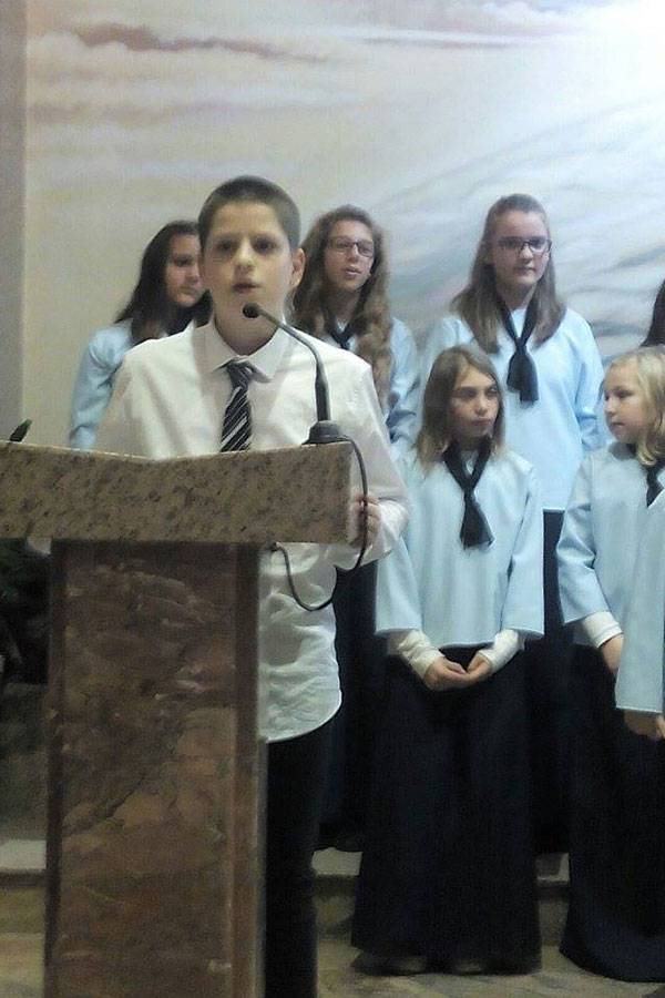 Prvi je nastupio dječji zbor sa skladbama Pustite dječicu k meni, Zagrljaj svijeta, Ovim svijetom, Čuj, Isus te zove, Dolazimo ti Gospodine, Tu smo Kriste i O Marijo, slavna djevo. Razdragana dječja grla sve su razgalila svojom iskrenom i neiskvarenom pjesmom noseći Isusovu poruku „Pustite malene k meni. Njihovo je kraljevstvo nebesko.“