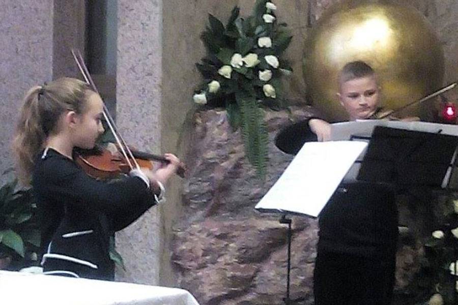 Nakon veselog dječjeg zbora nastupio je duo violina sa skladbama Andante i Allegretto J. F. Mazasa.