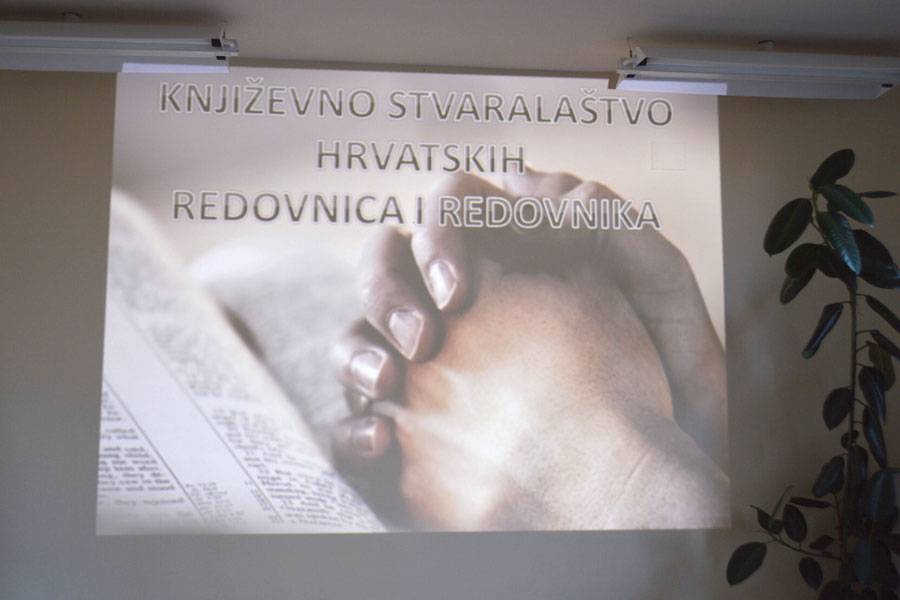 Uvodeći u temu, s. Ćavar je naglasila, kako su redovnice i redovnici prisutni od samih početaka pisane hrvatske riječi. U tom kontekstu uputila je na Bašćansku ploču (1100. godine) u kojoj nalazimo spomen na redovnike, monahe, navodno benediktince, premda još nije sa sigurnošću potvrđeno o kojim se redovnicima radi.