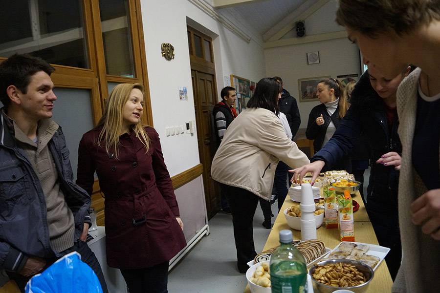 Nastavili smo susret u vjeronaučnoj dvorani gdje smo imali video projekciju o svecima i  na kraju druženje uz kolače, grickalice i piće. Svi smo bili ispunjeni i zadovoljni, radost na licima to pokazuje. Nastavit ćemo putem svetosti.