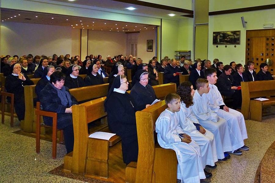 Euharistijskim klanjanjem na temu sa sv. Marijom De Mattias do nogu Raspetoga i  molitvom Večernje, koju je vodila s. Davida, kroz sat vremena, pripremali smo se za euharistijsko slavlje koje je predslavio župnik i dekan Dražen Karačić zajedno s mons. Ferdinandom Vražićem. Poseban doprinos slavlju bila je nadahnuta propovijed župnika koji nas je potaknuo i ohrabrio na življenje svetosti sv. MDM vraćajući se uvijek prvoj ljubavi.