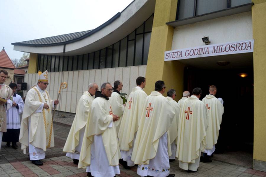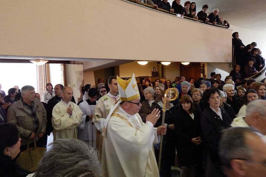 Nakon popričesne molitve biskup Semren pročitao je pozdravno pismo mjesnog ordinarija Franje Komarice, koji je bio spriječen nazočiti tom velebnom slavlju: „Zahvaljujem dobrome Bogu za svaku i svakoga od vas što se trudite u svome osobnom zvanju vjerodostojno služiti Kristovu otkupiteljskom djelu u Njegovoj Crkvi i u ime Njegove Crkve, slično kako je to u svoje vrijeme i u svome okruženju uzorno činila vaša utemeljiteljica Marija De Mattias, čiju 150. obljetnicu prelaska u vječnost sada obilježavate. Hvala vam i za vašu ljubav i molitvu prema preostalim, nakon tragičnog progona, članovima moje Biskupije”, ističe se u pismu biskupa Komarice.