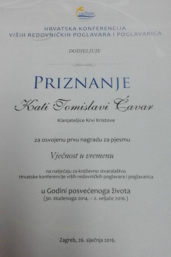 Klanjateljice su bile ponosne jer je s. Tomislava Ćavar pjesmom Vječnost u vremenu osvojila prvu nagradu za poeziju te se već priprema za nagradno putovanje u Svetu Zemlju!