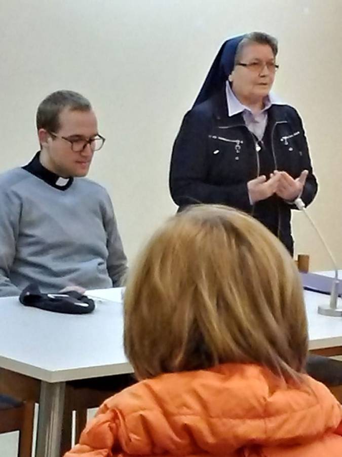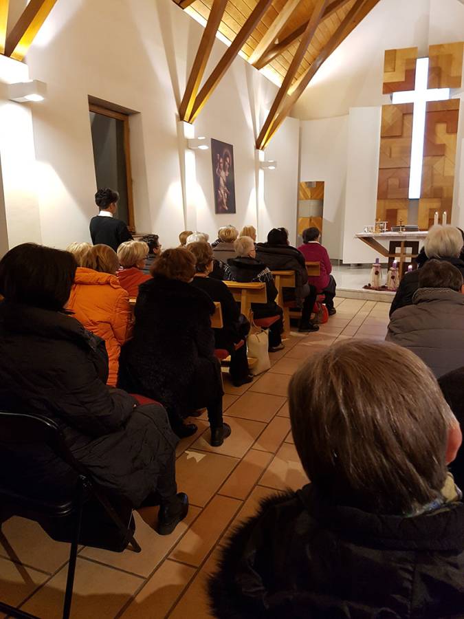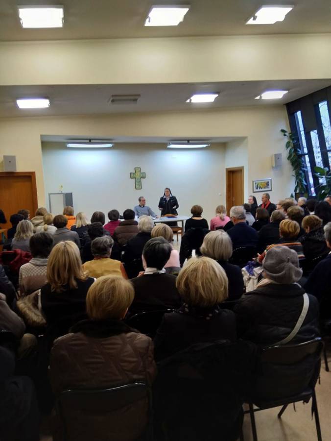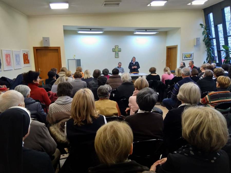 Adventska duhova obnova za članove zajednica Krvi Kristove održana je 15. prosinca 2018. u prepunoj samostanskoj dvorani sestara Klanjateljica Krvi Kristove u Zagrebu, Miramarska cesta 100.