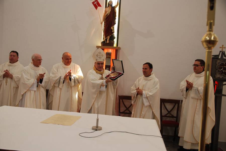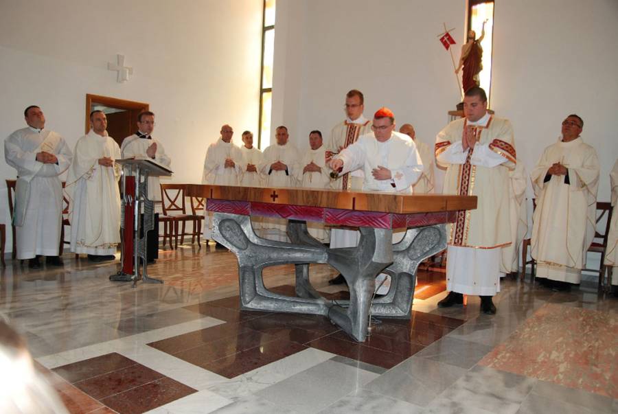Nakon molitve Vjerovanja, o. Willi Klein, CPPS, unio je moći bl. Alojzija Stepinca koje je za ovu jedinstvenu prigodo donio kardinal. „Ove svete relikvije stavljamo u ovaj oltar da i na taj način bl. Alojzije bude trajno prisutan među vama. Stoga kad god budete ulazili u crkvu spomenite se toga: ovdje je on koji za nas zagovara. On je moćan kod Boga. On nam pokazuje način na koji se mi moramo odnositi prema Bogu. Molite mu se često, tražite zagovor za sebe, za svoje obitelji, za djecu i mlade, i za sve koji se Bogu posvećuju“, rekao je nadbiskup.