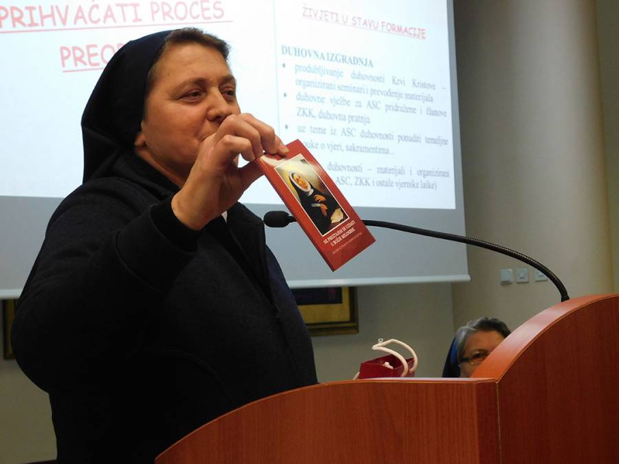 Uslijedilo je predavanje o temi „Krv Kristova – izvor života i svetosti“ koje je izložila s. Danijela Anić. U poslijepodnevnom radu, četiri sestre Klanjateljice Krvi Kristove i vjernica laikinja,  obogatile su sudionike iznošenjem svojih iskustava o dugogodišnjem radu i suradnji te osnivanju i vodstvu zajednica Krvi Kristove. Nakon radionice pod nazivom Vrednovanje prijeđenog puta s pogledom u budućnost slijedili su izvještaji o radu u skupinama koje su animirale 4 sestre i 5 laikinja. U skupinama se u otvorenom razgovoru posebna pozornost posvetila otkrivanju vizije za budućnost zajedničkog hoda Klanjateljica Krvi Kristove (ASC) i članova zajednica Krvi Kristove (ZKK).