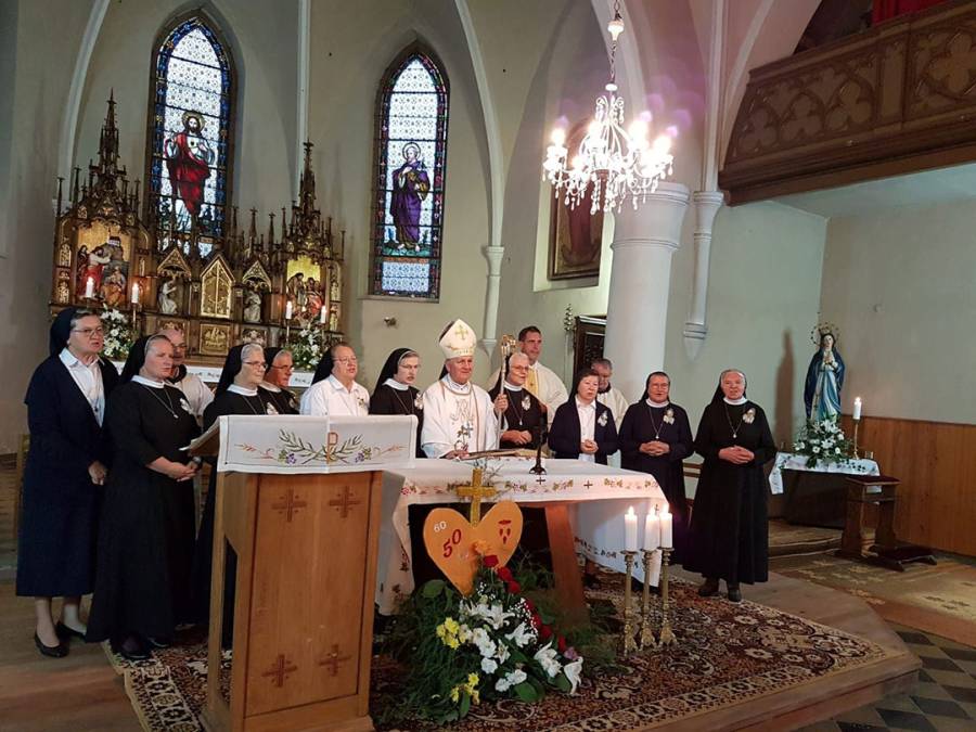 Biskup Komarica pozdravio je sestre jubilarke i prisutne te pozvao da ujedine svoje molitve zahvale Bogu i svakoj pojedinoj za vjernost u odgovoru na Božji poziv i sve žrtve u ostvarenju svoga poslanja. „Ne žrtva već ljubav je ona koja pokreće i osmišljava žrtvu i zalaganje za bližnje“, naglasio je biskup. „Neka vam uzor bude Marija koja je dala Bogu sve za sve. Dala je sebe i svoj život a dobila Boga, Spasitelja za spas čovječanstva.“
