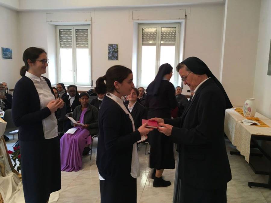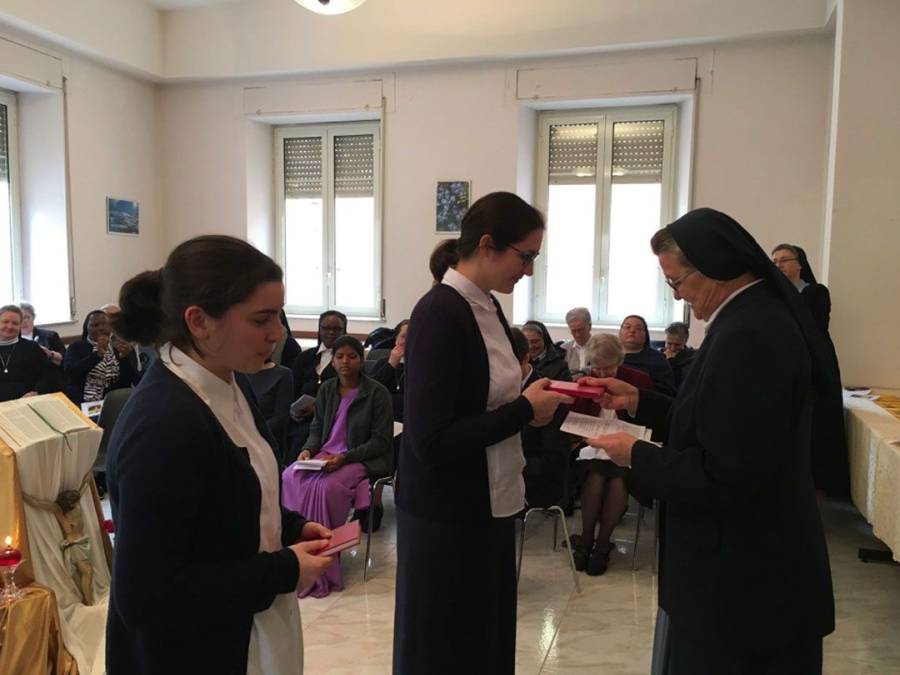 U slavljeničkom i molitvenom duhu, s. Nadia Coppa uputila je poticajne riječi ohrabrenja i podrške te po imenu prozvala svaku novakinju koja je od svoje Regionalne poglavarice primila Konstitucije Družbe u prisutnosti magistre novakinja sestre Mariamme Kunnackal. Novakinjama Martini Bukarica i Biljani Kostić, Konstitucije je predala s. Ana Marija Antolović, poglavarica Regije Zagreb. Trenuci slavlja, pjesme i čestitanja nastavljeni su nakon službenoga primanja u novicijat.