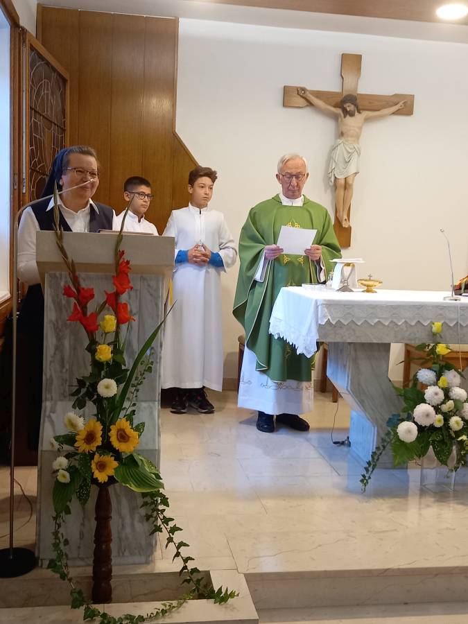 Misno slavlje predvodio je vlč. Vladimir Magić, župnik župe Svetoga Marka u Zagrebu, na čijem se području nalazi samostan na Tuškancu. U homiliji, osvrćući se na evanđeoski odlomak 24. nedjelje kroz godinu B, vlč. Magić pozvao je nazočne da svatko osobno dade odgovor na pitanje Tko je za mene Isus Krist? Ohrabrio je sestre koje obnavljaju zavjete da vjerno i ustrajno nastave svoj hod za Gospodinom. Nakon misnoga slavlja nastavljeno je zajedništvo sestara uz objed u prostoru samostana.