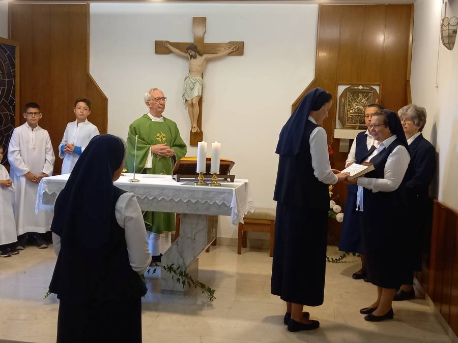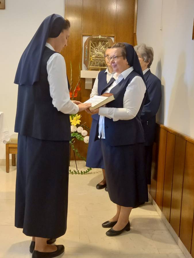 U nazočnosti s. Zdravke Leutar, regionalne poglavarice i dviju svjedokinja s. Marije Pranjić, regionalne savjetnice te s. Ankice Krupnicki, odgojiteljice sestara juniorki, sestre Ivana i Kristina pred vjerničkom su zajednicom javno izrekle svoj zavjete da će … kroz jednu godinu živjeti u čistoći, siromaštvu i poslušnosti prema Konstitucijama Klanjateljica Krvi Kristove i kao članice ove Družbe pripremati se za potpuno predanje Gospodinu po doživotnim zavjetima.