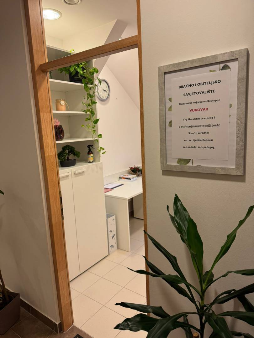 U ponedjeljak 26. siječnja 2026. godine upriličena je svečanost prigodom blagoslova Bračnog i obiteljskog savjetovališta Đakovačko-osječke nadbiskupije u Vukovaru koje je započelo s radom 01. siječnja 2026., te je u njemu zaposlena mr. sc. sestra Ljubica Radovac, soc. radnica i soc. pedagog, edukantica škole kibernetike i sistemske terapije. Savjetovalište u Vukovaru je rezultat višegodišnjih pregovora između Nadbiskupije i Grada Vukovara (od 2021.), te je u konačnici dana 22. prosinca 2025. potpisan Ugovor o međusobnim pravima i obvezama kojim je uspostavljeno Bračno i obiteljsko savjetovalište – potpisnici mons. Đuro Hranić, nadbiskup, gosp. Marijan Pavliček, vukovarski gradonačelnik i izv. prof. dr. vlč. Josip Bošnjaković, stručni voditelj savjetovališta u Nadbiskupiji. U samu realizaciju uključila se 2025. i zajednice sestara Klanjateljica Krvi Kristove, Regija Zagreb, čija je s. Ljubica članica.